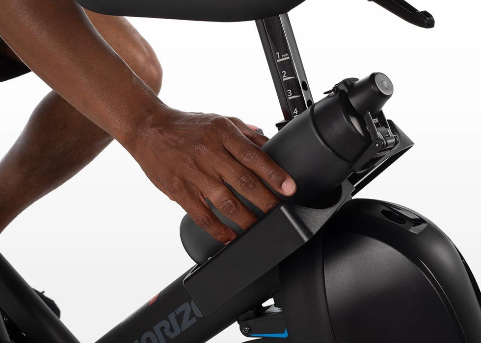 Bring the studio home on the Horizon 7.0 IC connected fitness bike. Simply pair your phone or tablet via Bluetooth and keep pace with your favorite cycling classes using 100 electronically controlled resistance levels. The included Bluetooth heart rate band, dual water bottle holder and clip in pedals offer all the extras for fully immersive workouts with the apps you love.